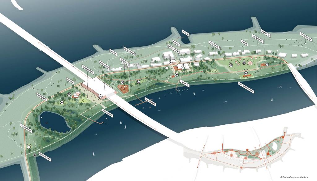 Flux has won the selection for the design of the new Veurlent City Park in Nijmegen. Veurlent is located in the floodplains of the Waal river. The island forms the link between the city and the river landscape and will offer space for both intensive use and nature development.