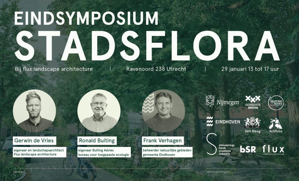 Op donderdag 29 januari organiseert Flux het eindsymposium van het ontwerpend onderzoek Stadsflora, een onderzoek naar toekomstbestendige beplanting in de stad. In het symposium zullen de case studies en de belangrijkste conclusies uit het onderzoek gedeeld worden door Gerwin de Vries, Kris Kersten en Marleen Buitenwerf (Flux landscape architecture) met aansluitend presentaties van Ronald Buiting (Buiting Advies BV) over een natuurlijke aanpak voor beplanting in de stad en Frank Verhagen (Gemeente Eindhoven) over aanleg en beheer van groen in de stad.