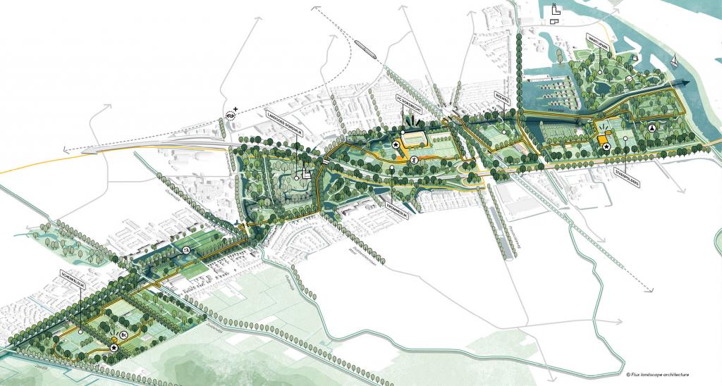 Flux heeft gewerkt aan een visie en voorlopig ontwerp voor stadspark Dordrecht. Het park is op verschillende onderdelen uitgewerkt, zoals routes, groen, water, programma en objecten. Kenmerkend voor het park is een 12km lange parkloop voor verschillende gebruikers met de integratie van sport en meer ruimte voor natuur en water in verschillende parkbiotopen. In opdracht van gemeente Dordrecht.