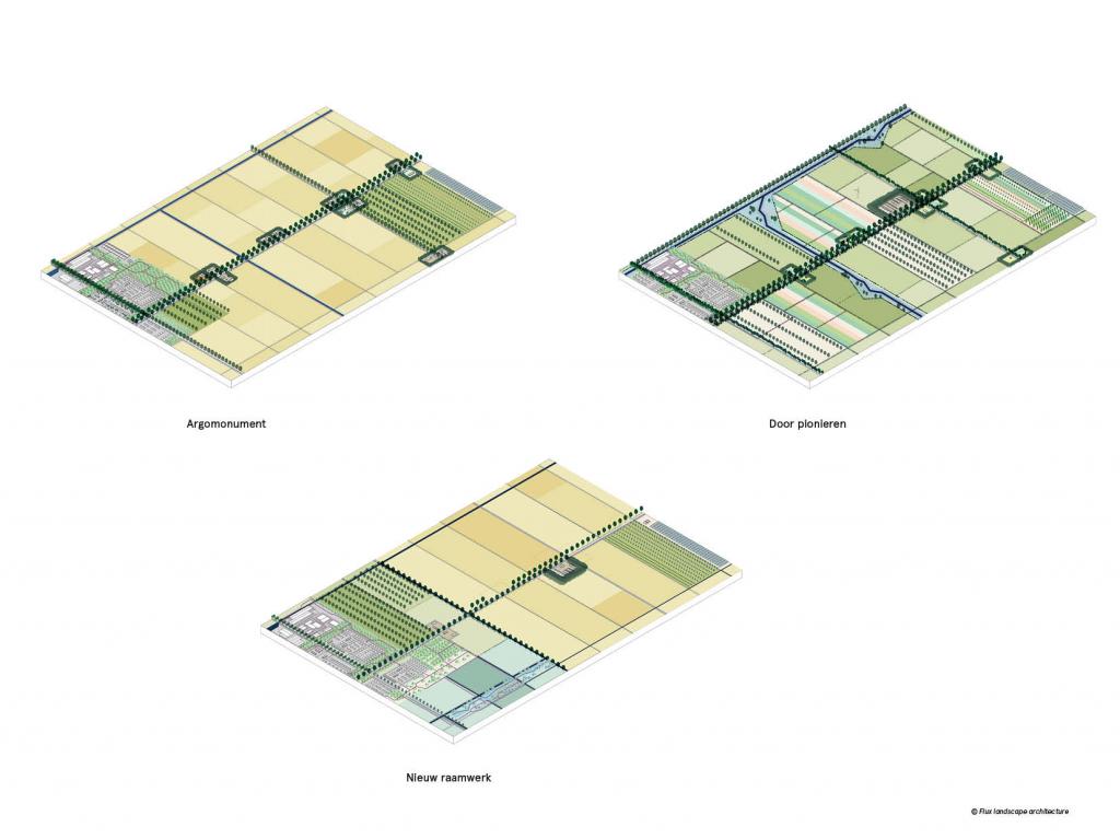 As a result of these three models, Flux drew up 10 design principles for a future-proof Noordoostpolder. The design principles are not a straightforward elaboration of one of the models but contain elements of all the models. The design principles provide an insight into how the Noordoostpolder can develop at different scales: from the main outlines at the scale of the entire polder to design principles at the farmyard level. In drawing up the design principles, in addition to striving for a basic quality of landscape, a certain maneuverability was assumed that fits in with the faster, unforeseen economic developments.