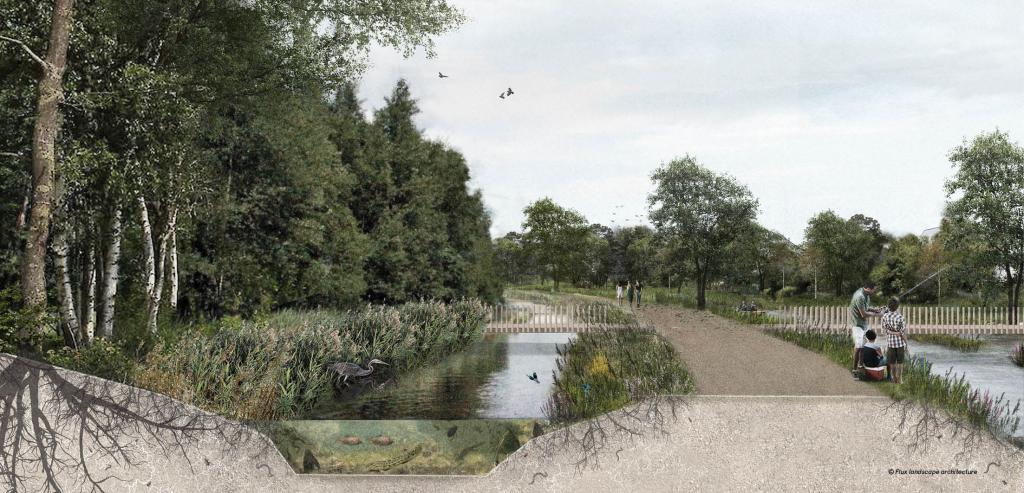 Flux has developed a vision for the river Hunze in Groningen, commissioned by the municipality of Groningen. The vision shows how the Hunze could once again play a stronger role in and around the city of Groningen, both in the water system, urban transformations and in greening the city. The Hunze thus forms an essential structure for the city of Groningen, drawing landscape into the city. There are opportunities here for water storage, cooling and improving biodiversity. Urbanisation can also be oriented in the form of new edges along the Hunze. Various subareas together form a characteristic series along the Hunze, but each requires a specific approach. The vision depicts the opportunities and also proposes specific spatial design principles.