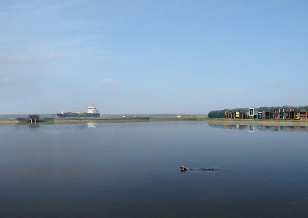 Coast improvement, needed because of climate change and rising sea levels, creates a situation in which most villages along the Westerschelde are suddenly placed behind large amounts of sand. In addition, the natural system will loose it's dynamics. The existing typology of sluices can be re used to keep the villages connected with the water and bringing back dynamics into the natural system. The new sluices are a contemporary interpretation of the original sluices and provide opportunities for recreation, aquaculture and new residential environments.