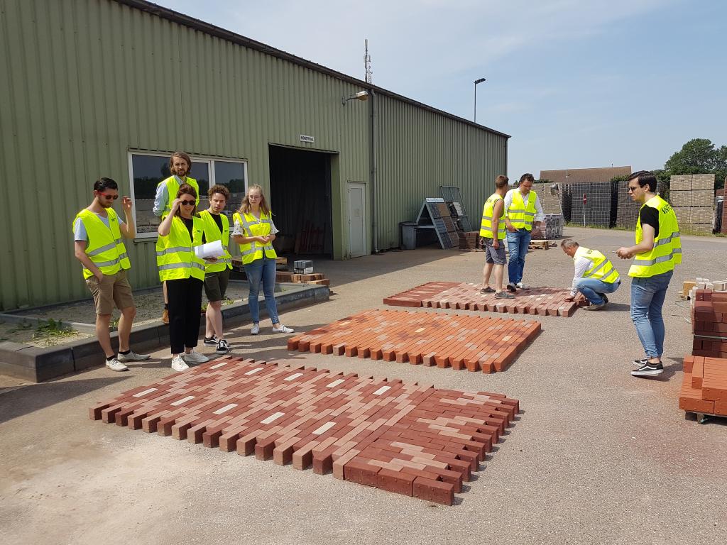 For a design of a collective inner garden, the Flux team visited the Vandersanden factory, where we experimented and tested with a pattern of clinker bricks. Afterwards, the team received a tour through the factory to gain insight into the production process.