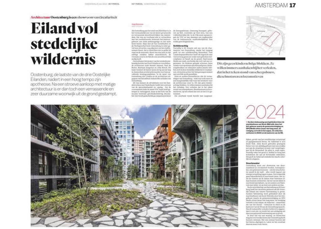The Oostenburg project is reviewed in the Parool. After winning the tender, Flux has been working on the project since 2017 in which a ground-level courtyard and four roof gardens have been designed. The courtyard is characterised by a floor of reused, broken stelcon plates in different sizes and a wadi in the centre of the court. The planting grows through the paving which will create a naturalised green oasis in the coming years. In collaboration with OZ architects, Workshop architects and Schadenberg and commissioned by Vorm ontwikkeling.