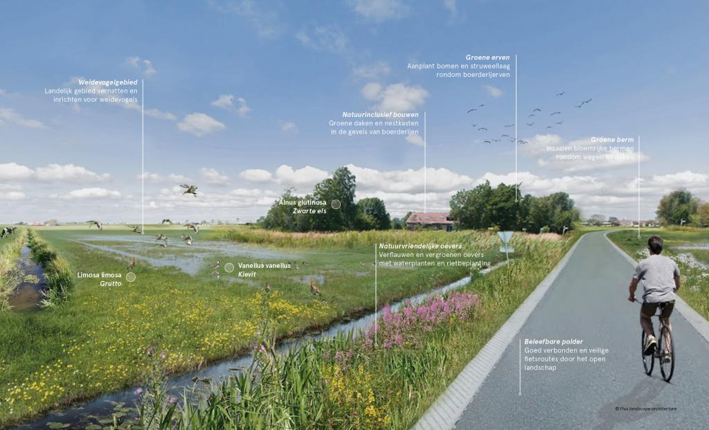 Flux heeft een groenvisie ontwikkeld voor Steenwijkerland. Het toekomstperspectief legt een groen en gezond Steenwijkerland voor dat beter bestand is tegen wateroverlast, hittestress en tegelijkertijd een gezondere leefomgeving biedt voor mens en dier. De zeven unieke gebiedstypen, het DNA van Steenwijkerland, vormen hiervoor de basis. Met een nieuw robuust groenblauw netwerk is er ruimte voor gemakkelijke verplaatsing van diersoorten en het creëren van verrassende recreatieve verbindingen tussen de kernen en het landschap. Het resultaat is een compleet en aantrekkelijk klimaatadaptief landschap, klaar voor de toekomst.